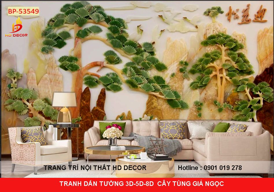 TRANH DÁN TƯỜNG 3D-5D-8D CÂY TÙNG GIẢ NGỌC