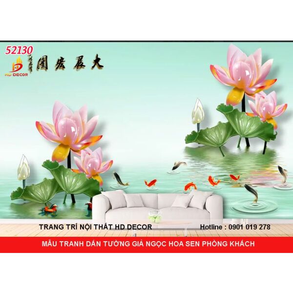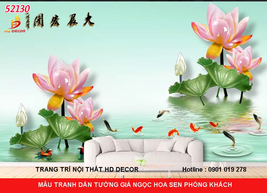 TRANH DÁN TƯỜNG 3D-5D-8D GIẢ NGỌC HOA SEN ĐẸP NHẤT CHO PHÒNG KHÁCH