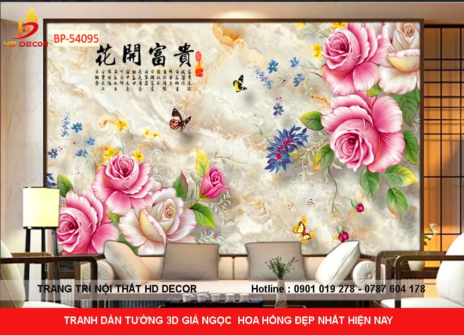 TRANH DÁN TƯỜNG 3D-5D-8D HOA HỒNG GIẢ NGỌC ĐẸP NHẤT HIỆN NAY