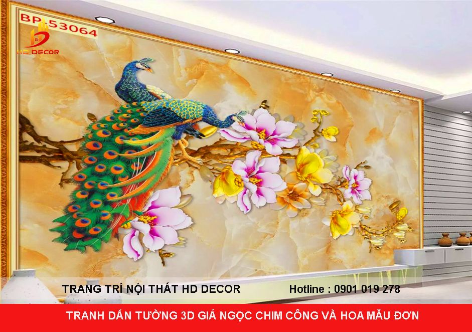 TRANH DÁN TƯỜNG 3D GIẢ NGỌC CHIM CÔNG GIẢ NGỌC ĐẸP NHẤT