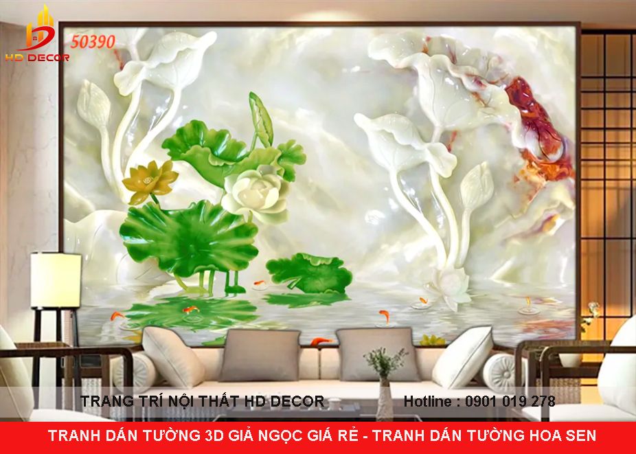 TRANH DÁN TƯỜNG 3D GIẢ NGỌC GIÀ RẺ - TRANH DÁN TƯỜNG HOA SEN GIẢ NGỌC