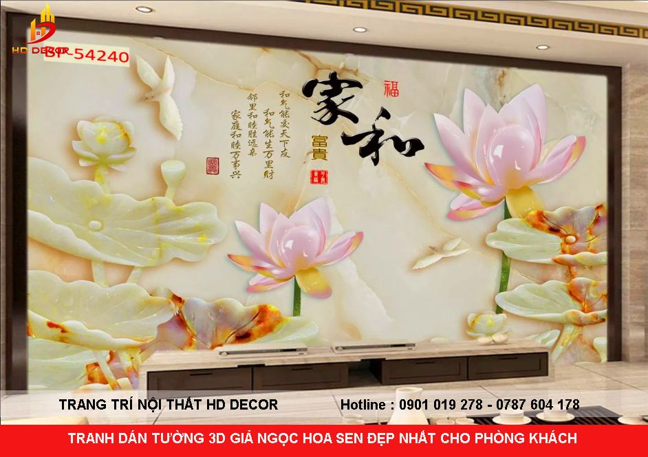 TRANH DÁN TƯỜNG 3D GIẢ NGỌC HOA SEN ĐẸP NHẤT HIỆN NAY