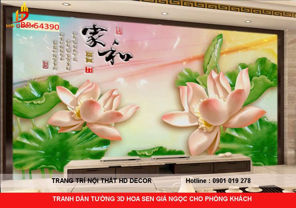 TRANH DÁN TƯỜNG 3D GIẢ NGỌC HOA SEN GIẢ NGỌC CHO PHÒNG KHÁCH