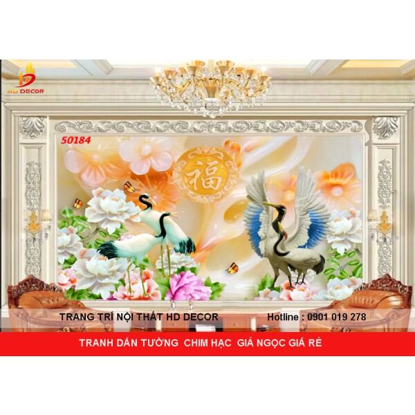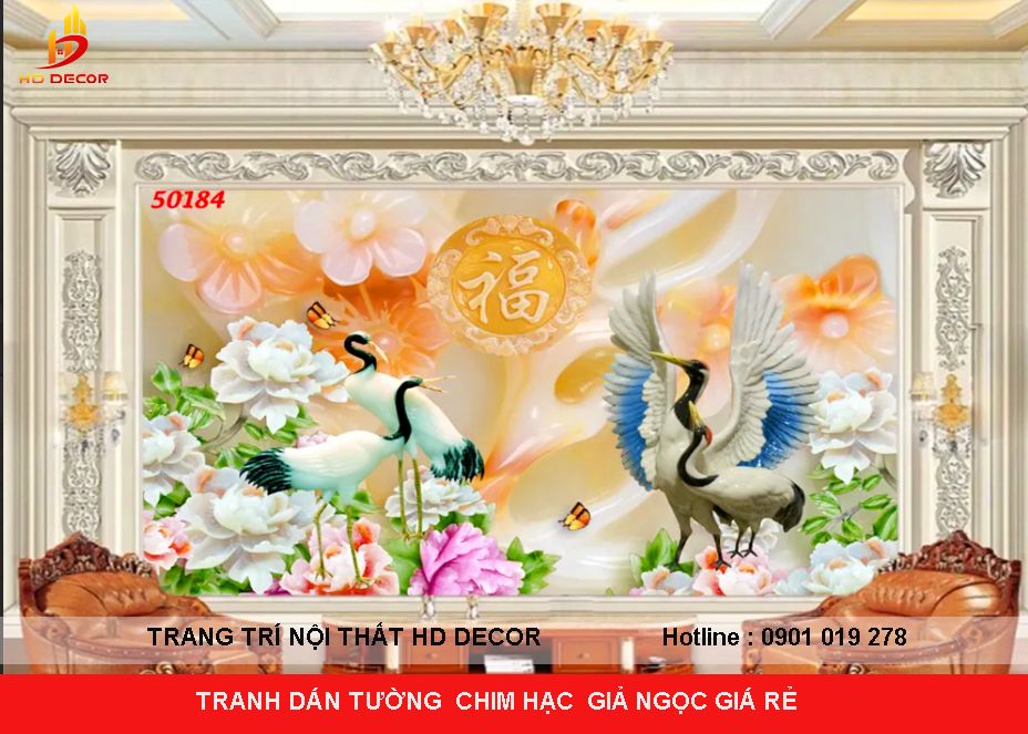 TRANH DÁN TƯỜNG 3D GIẢ NGỌC - TRANH DÁN TƯỜNG 3D CHIM HẠC TRẮNG