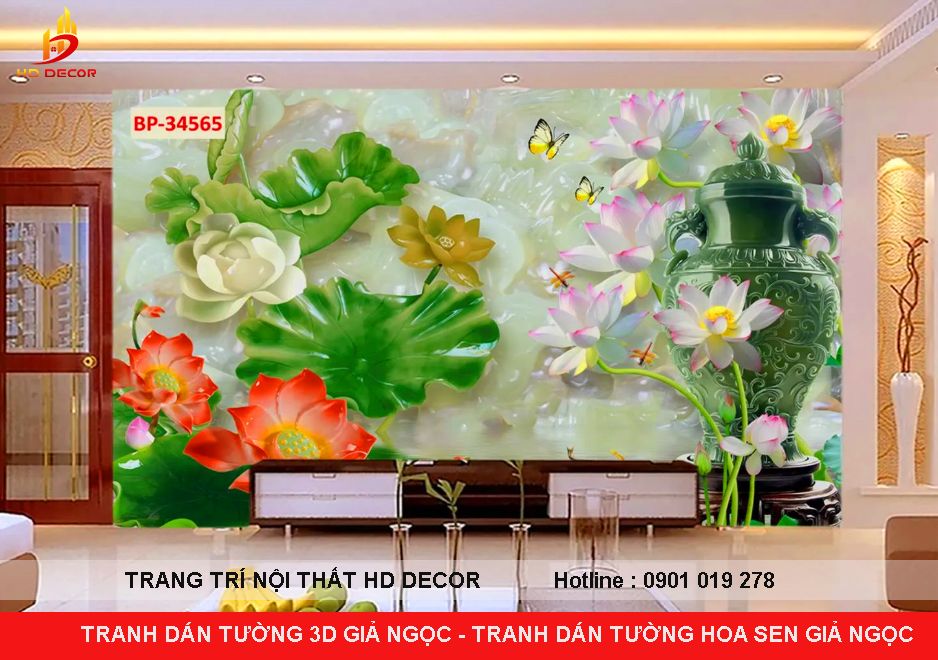 TRANH DÁN TƯỜNG 3D GIẢ NGỌC - TRANH DÁN TƯỜNG GIẢ NGỌC HOA SEN