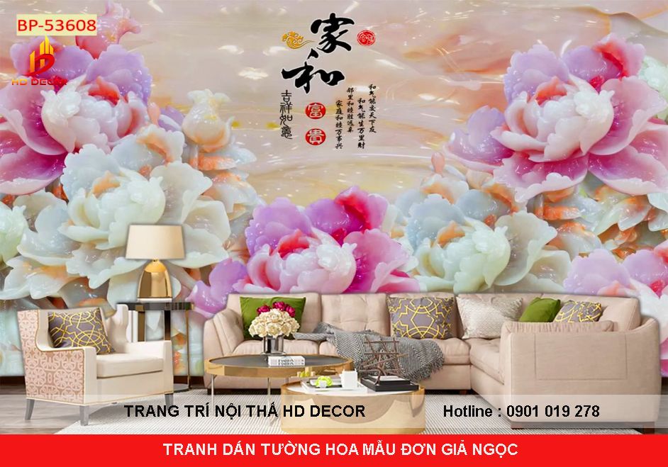 TRANH DÁN TƯỜNG 3D HOA MẪU ĐƠN GIẢ NGỌC