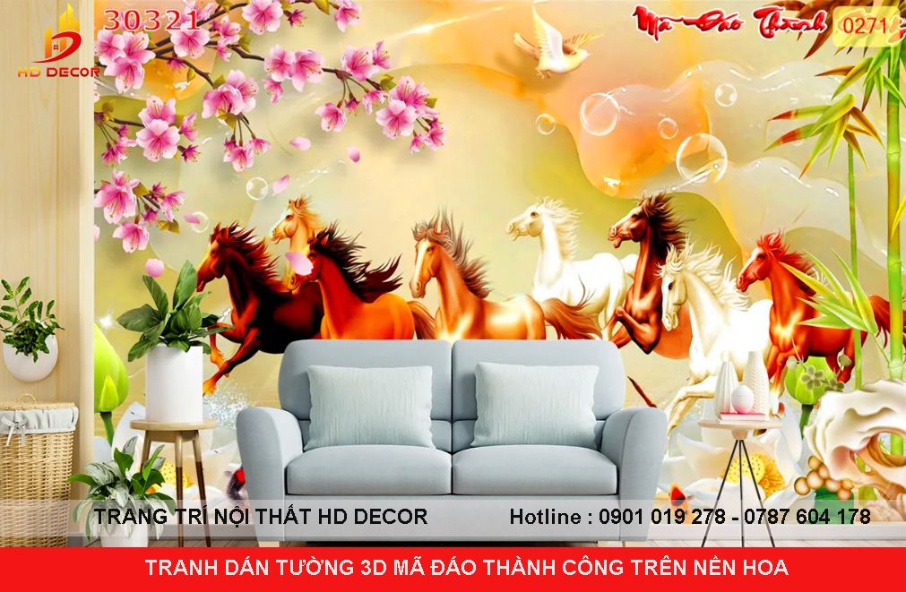 TRANH DÁN TƯỜNG 3D MÃ ĐÁO THÀNH CÔNG TRÊN NỀN HOA