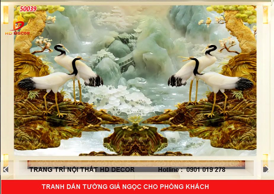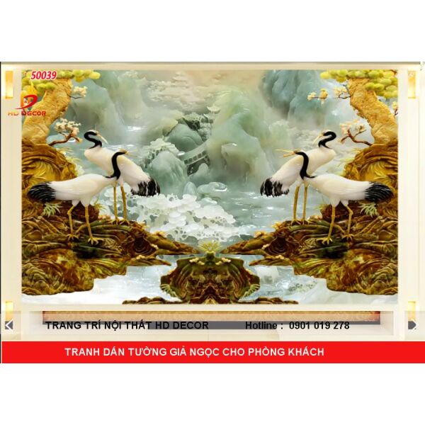 TRANH DÁN TƯỜNG GIẢ NGỌC CHIM HẠC ĐẸP NHẤT CHO PHÒNG KHÁCH