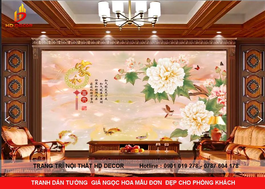 CÁC MẪU TRANH DÁN TƯỜNG GIẢ NGỌC KHỔ LỚN ĐẸP CHO PHÒNG KHÁCH