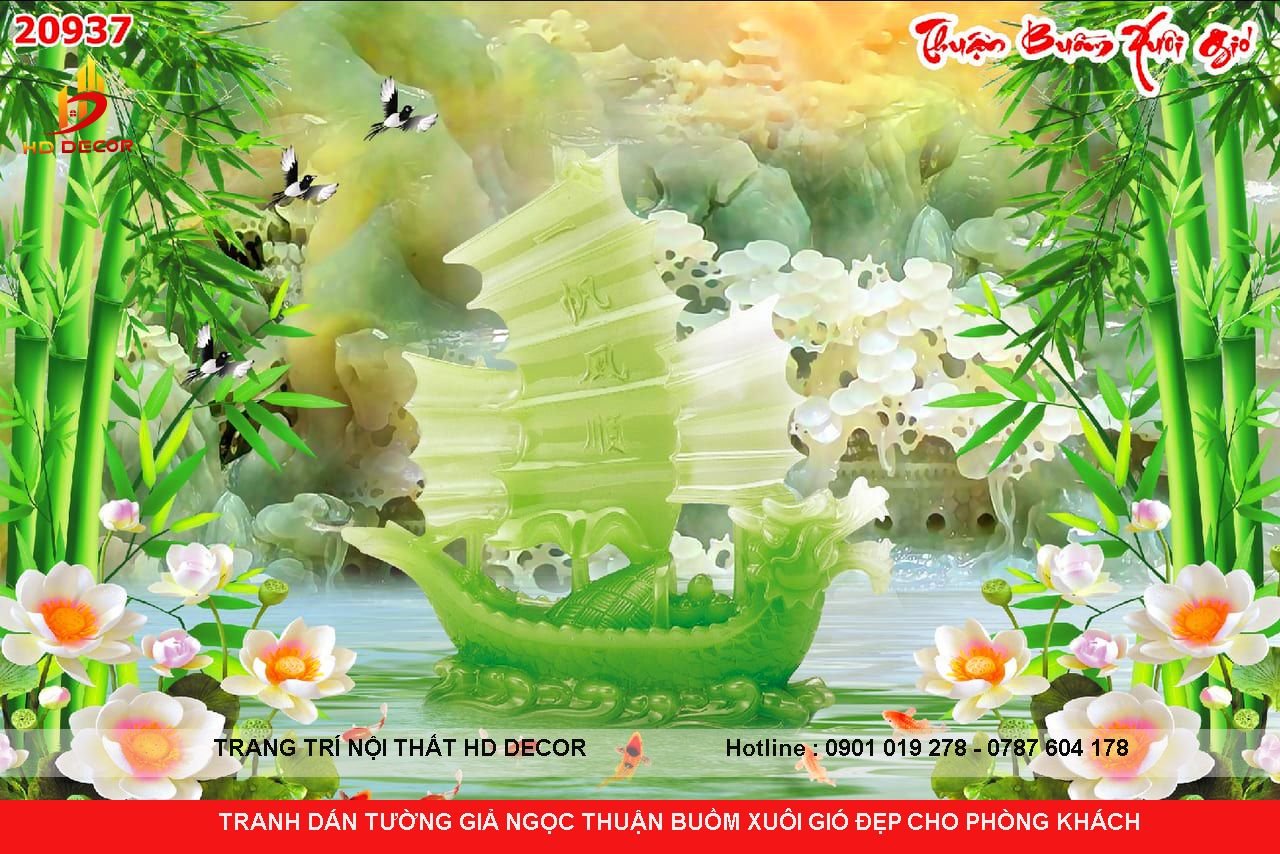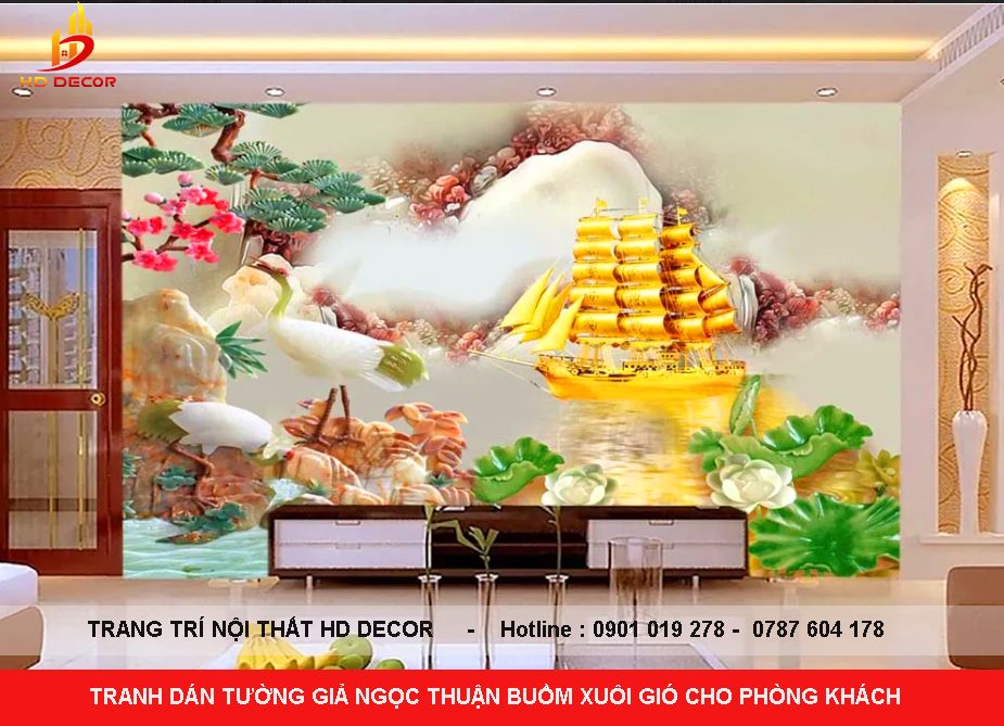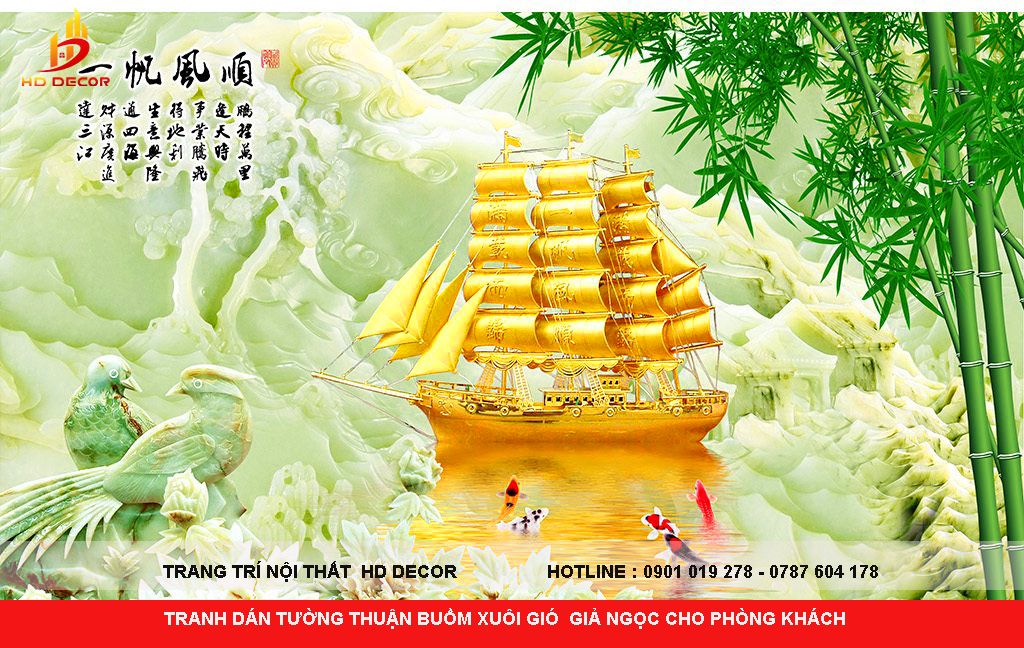 Tranh dán tường giả ngọc thuận buồm xuôi gió là một dòng tranh trang trí cao cấp, kết hợp giữa hình ảnh phong thủy “thuận buồm xuôi gió” và chất liệu mô phỏng ngọc, mang lại vẻ đẹp sang trọng và ý nghĩa may mắn cho không gian sống.