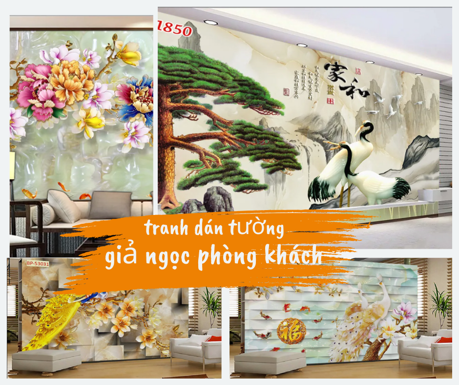 Dưới đây là cách chọn tranh dán tường giả ngọc cho phòng khách sao cho vừa đẹp mắt, vừa hợp phong thủy và phong cách nội thất: