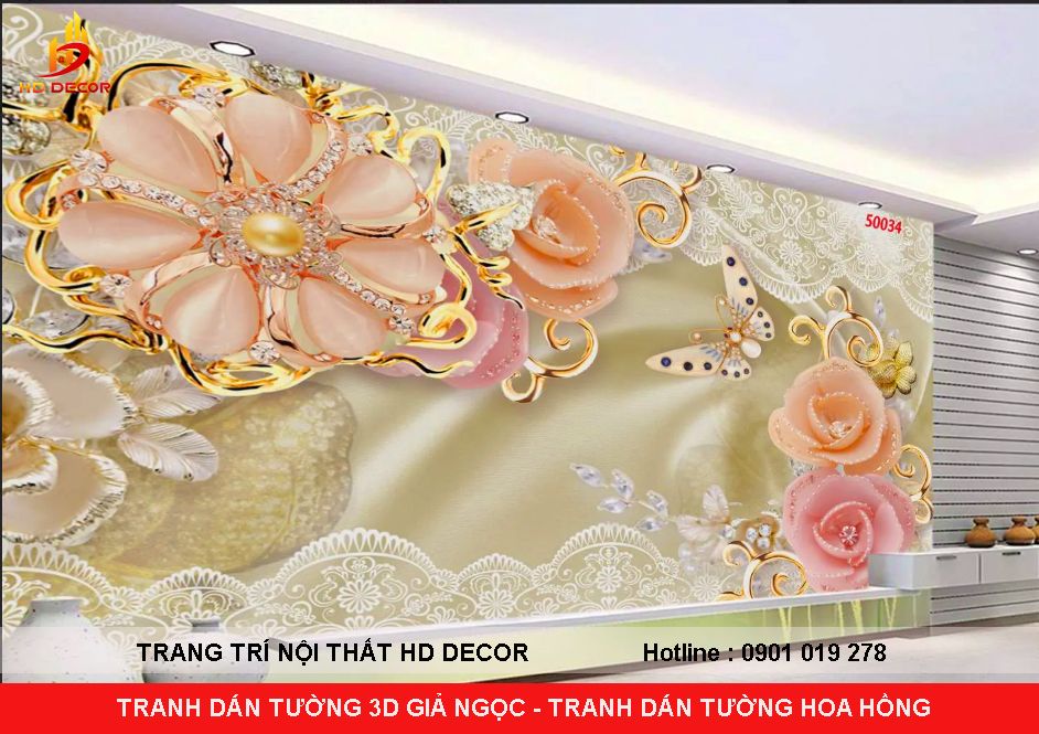 TRANH DÁN TƯỜNG GIẢ NGỌC - TRANH DÁN TƯỜNG HOA HỒNG