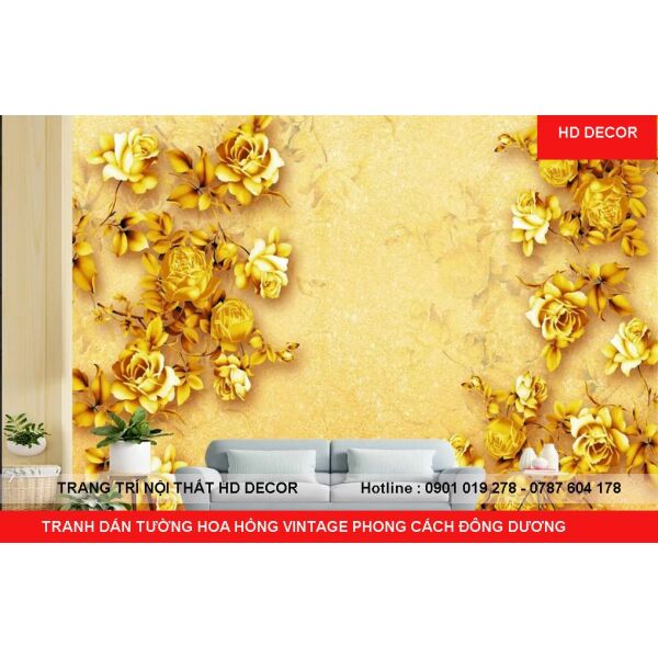 TRANH DÁN TƯỜNG HOA HỒNG VINTAGE PHONG CÁCH ĐÔNG DƯƠNG