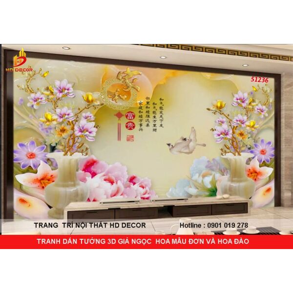 TRANH DÁN TƯỜNG HOA MẪU ĐƠN VÀ HOA ĐÀO ĐẲNG CẤP GIÁ RẺ