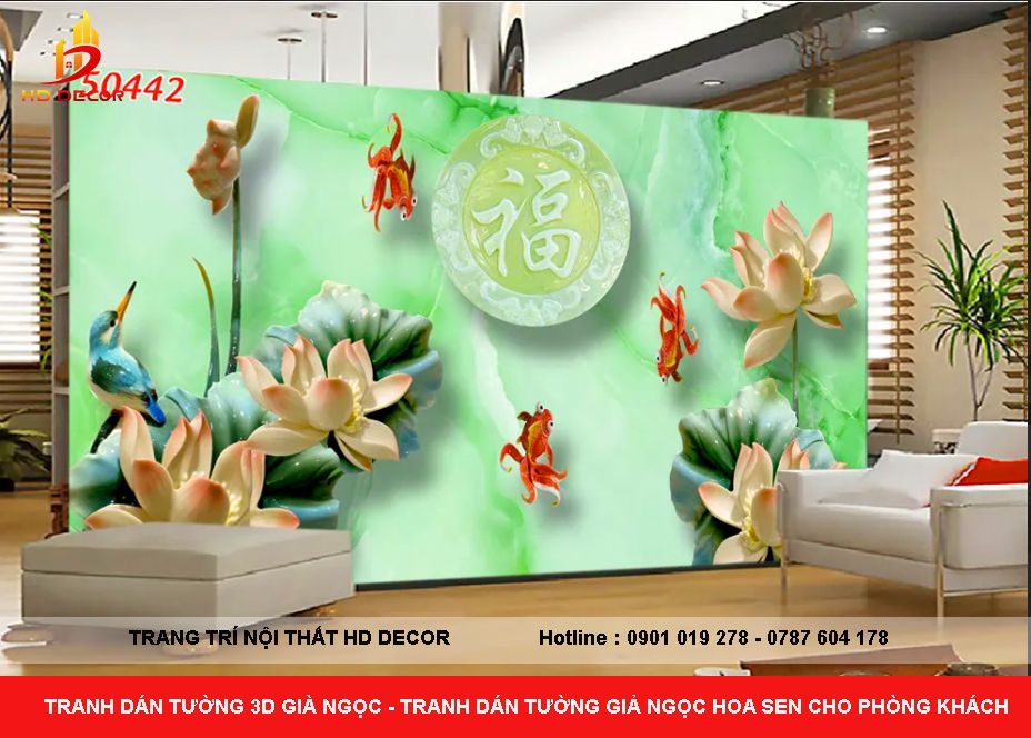 TRANH DÁN TƯỜNG HOA SEN GIẢ NGỌC CHO PHÒNG KHÁCH