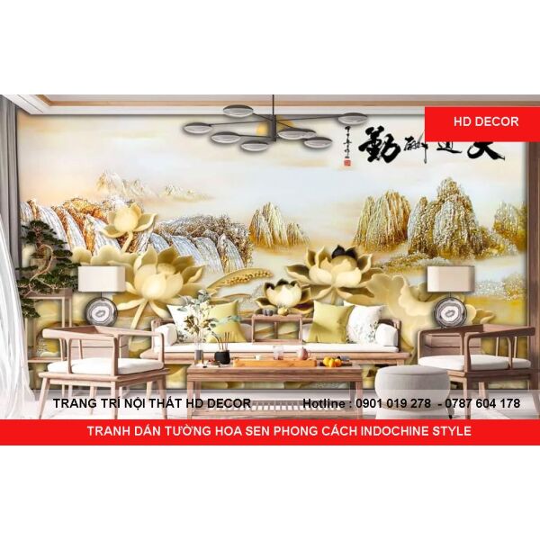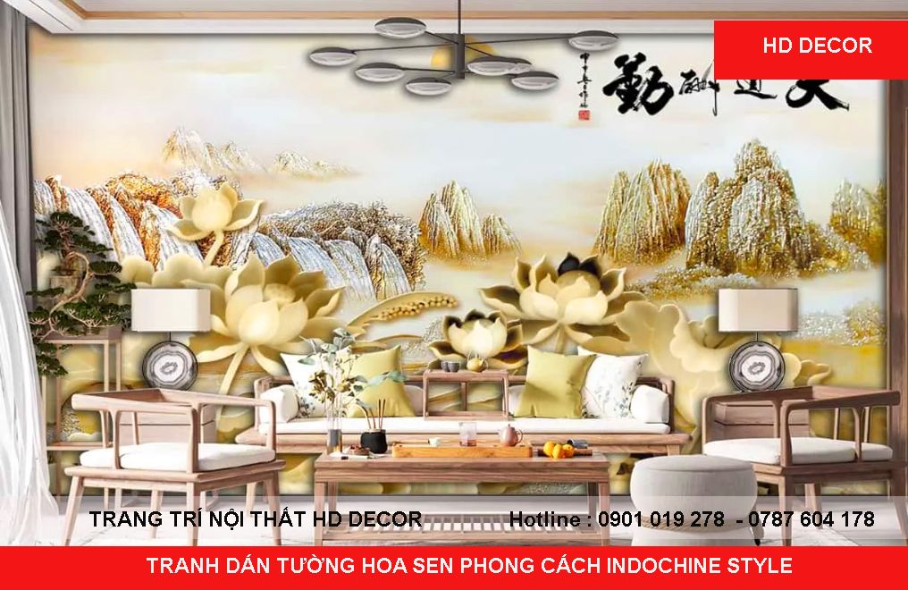 TRANH DÁN TƯỜNG HOA SEN PHONG CÁCH INDOCHINE STYLE