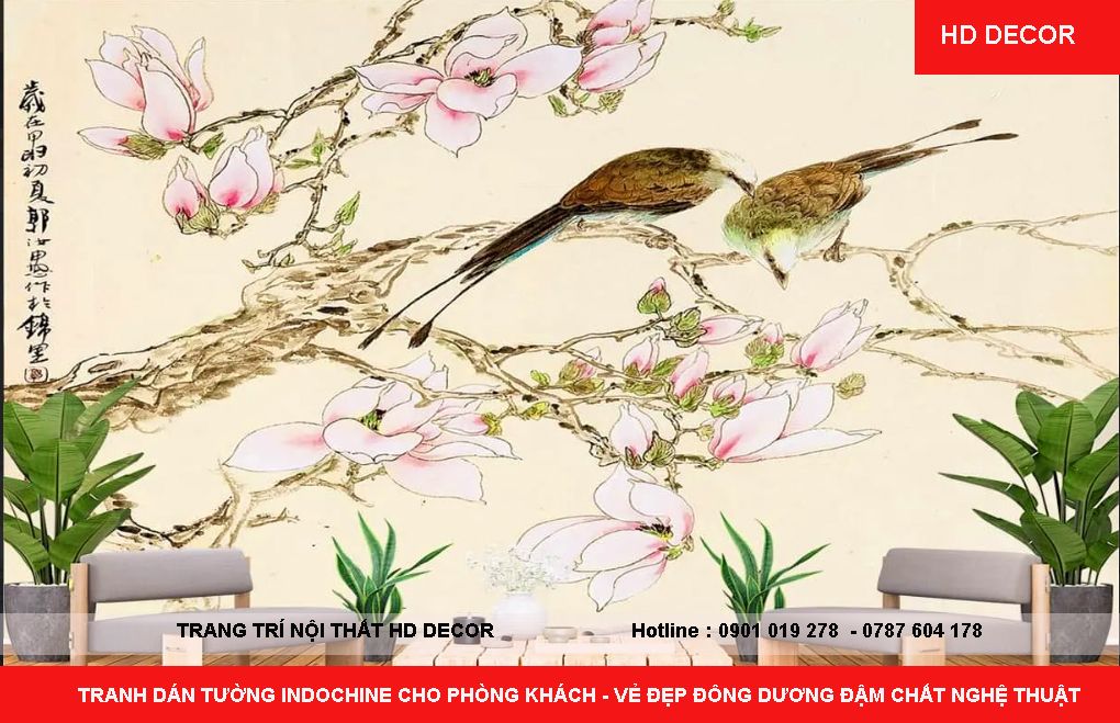TRANH DÁN TƯỜNG INDOCHINE PHÒNG KHÁCH - VẺ ĐẸP ĐÔNG DƯƠNG ĐẬM CHẤT NGHỆ THUẬT
