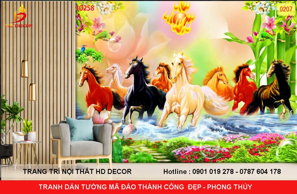 TRANH DÁN TƯỜNG MÃ ĐÁO THÀNH CÔNG ĐẸP - PHONG THỦY
