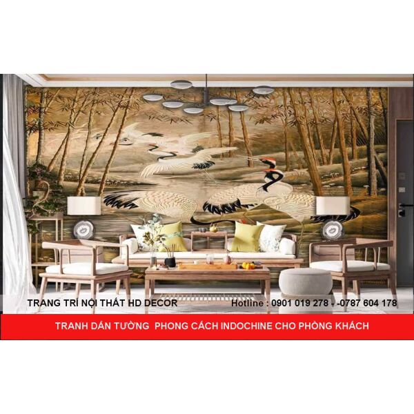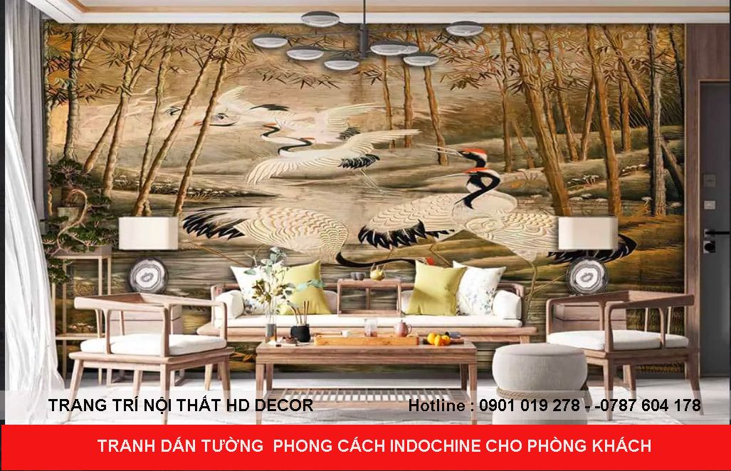 TRANH DÁN TƯỜNG PHONG CÁCH INDOCHINE CHO PHÒNG KHÁCH
