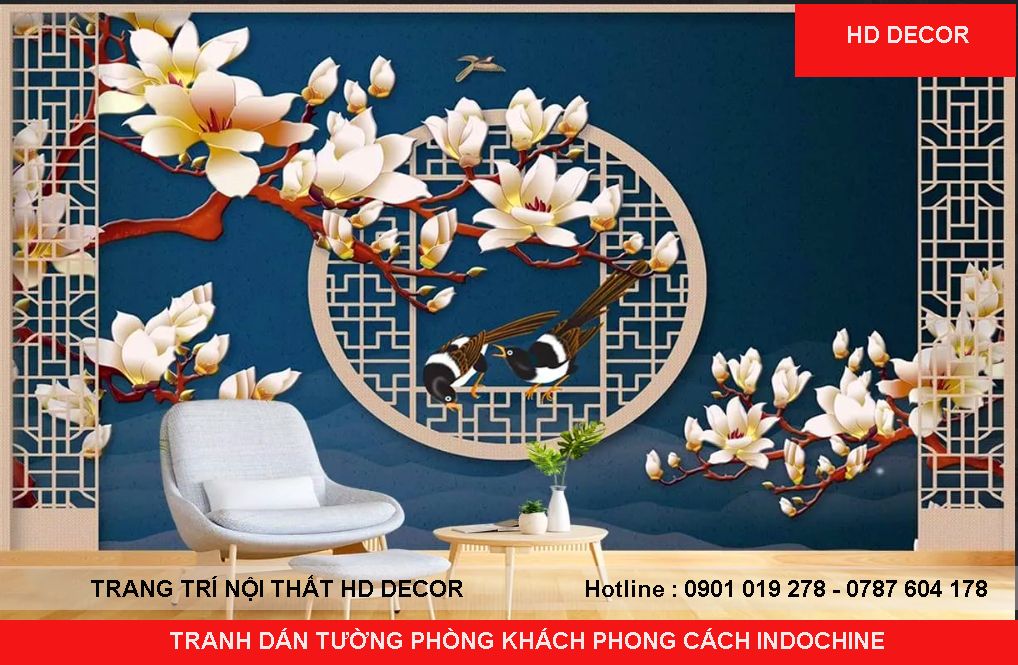 TRANH DÁN TƯỜNG PHÒNG KHÁCH PHONG CÁCH INDOCHINE