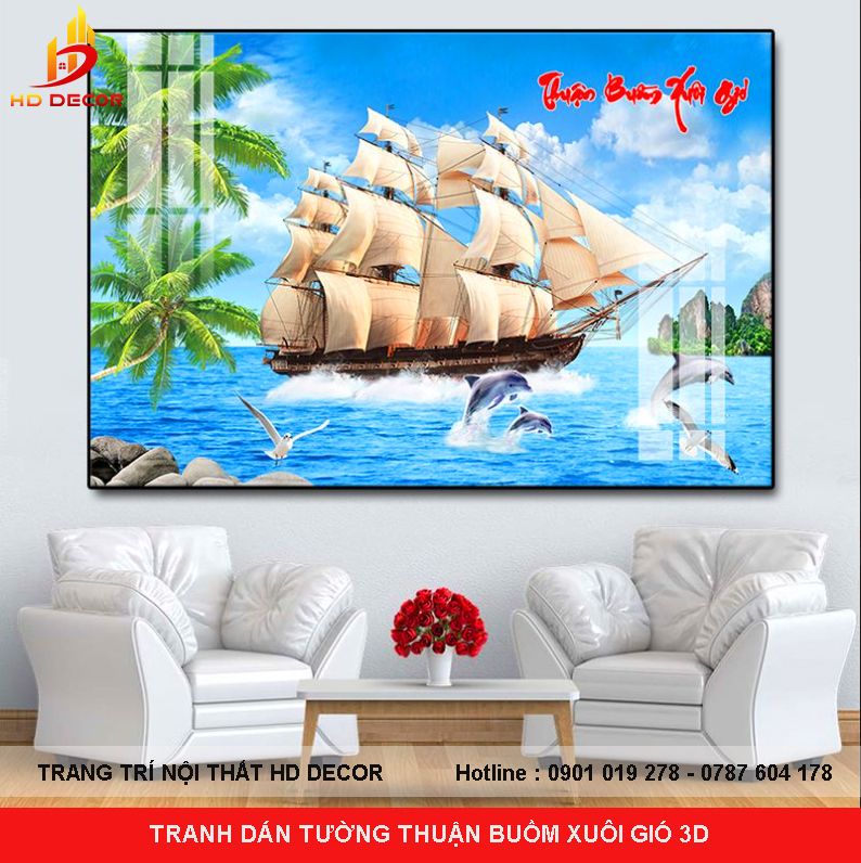 TRANH DÁN TƯỜNG THUẬN BUỒM XUÔI GIÓ 3D