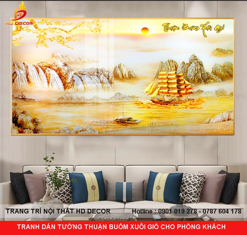 TRANH DÁN TƯỜNG THUẬN BUỒM XUÔI GIÓ CHO PHÒNG KHÁCH