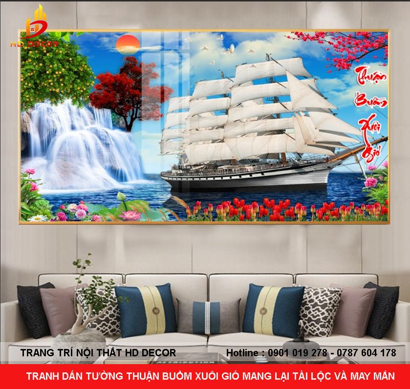 TRANH DÁN TƯỜNG THUẬN BUỒM XUÔI GIÓ MANG LẠI TÀI LỘC VÀ MAY MẮN
