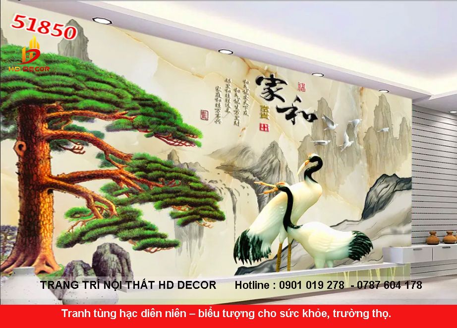 Tranh tùng hạc diên niên – biểu tượng cho sức khỏe, trường thọ.