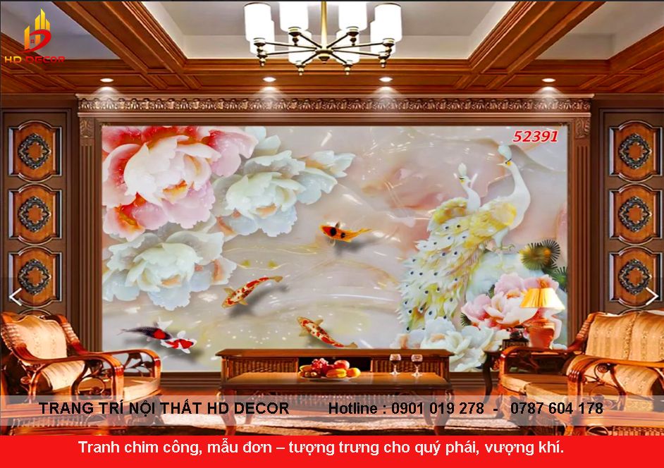Tranh chim công, mẫu đơn – tượng trưng cho quý phái, vượng khí.